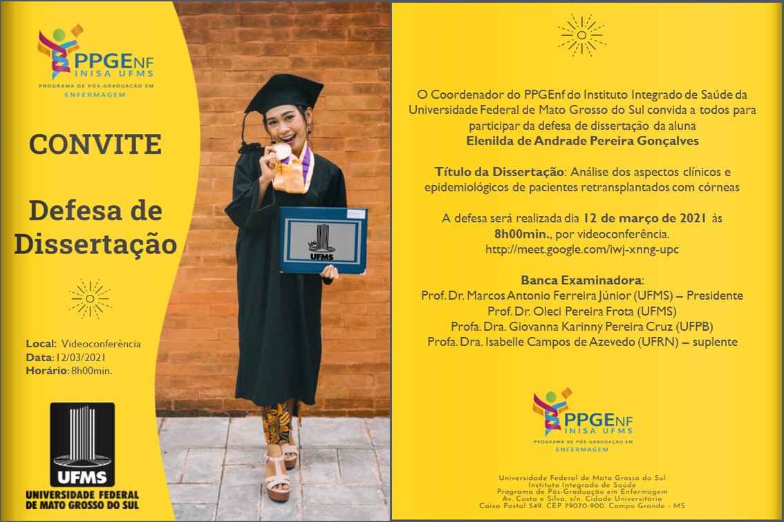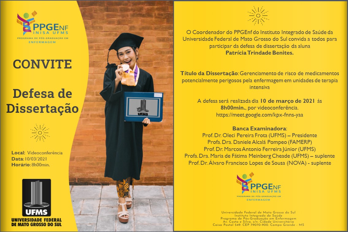 PPGEnf.> Convites: Defesa de Dissertação (Alunas: Patrícia Trindade Benites, Raysa Muriel Silva e Elenilda de Andrade Pereira Gonçalves)